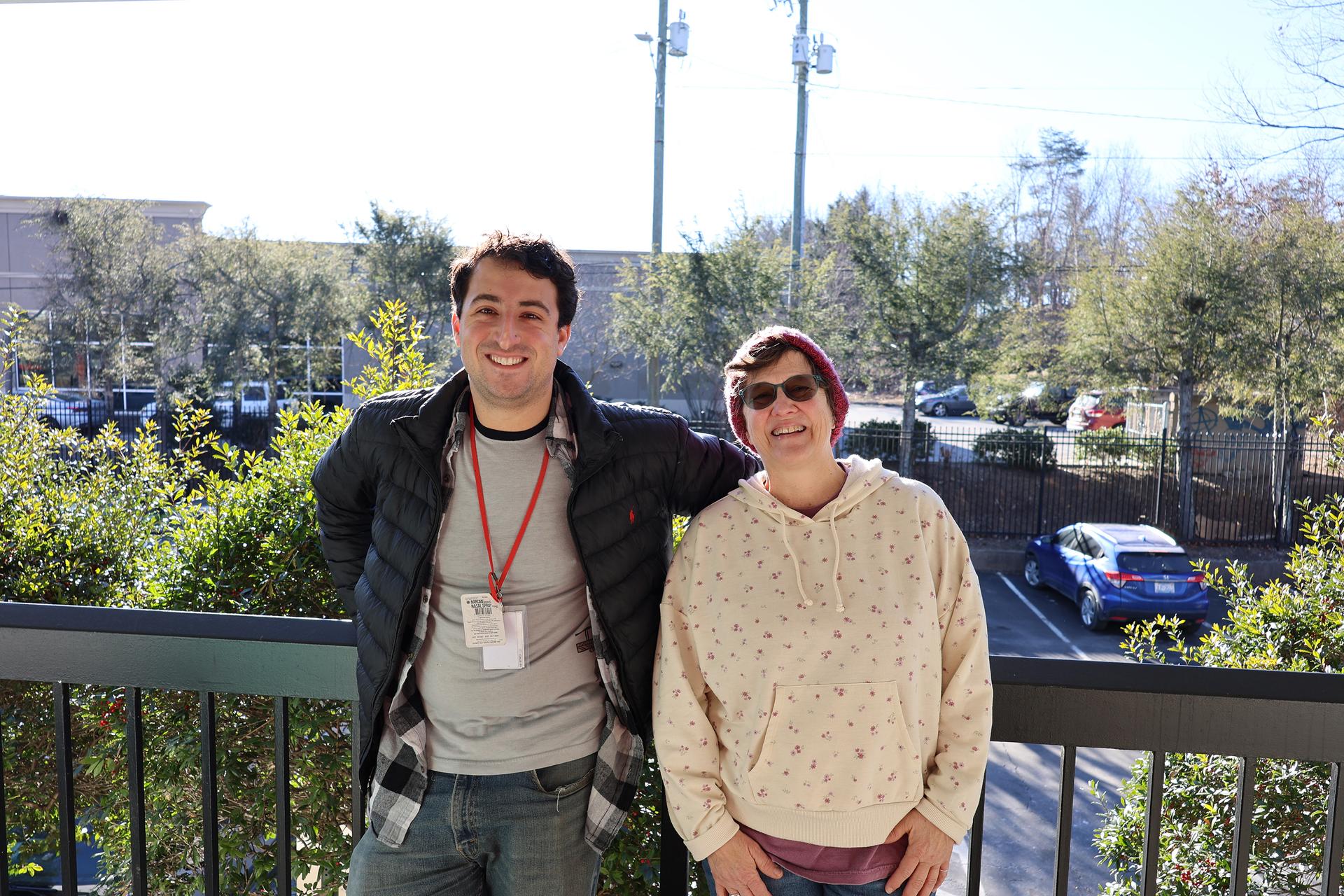 | RRH Case Manager, Nicholas, and RRH/HACA Program Manager, Amanda, outside their offices at Compass Point Village. |